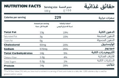 اجنحة دجاج حلال ، بهارات مشكلة ، طحين القمح ، ملح ، زين النخيل ، حمض الاسكوربيك E-300 ، متعدد ثلاثي الفوسفات E-451