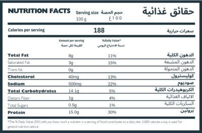 لحم الدجاج ، فئات الخبز ،دقيق القمح ، ماء ، زيت النخيل ، ملح ، توابل ، فوسفات الصوديوم E450 ، حمض الاسكوريبك E-300
